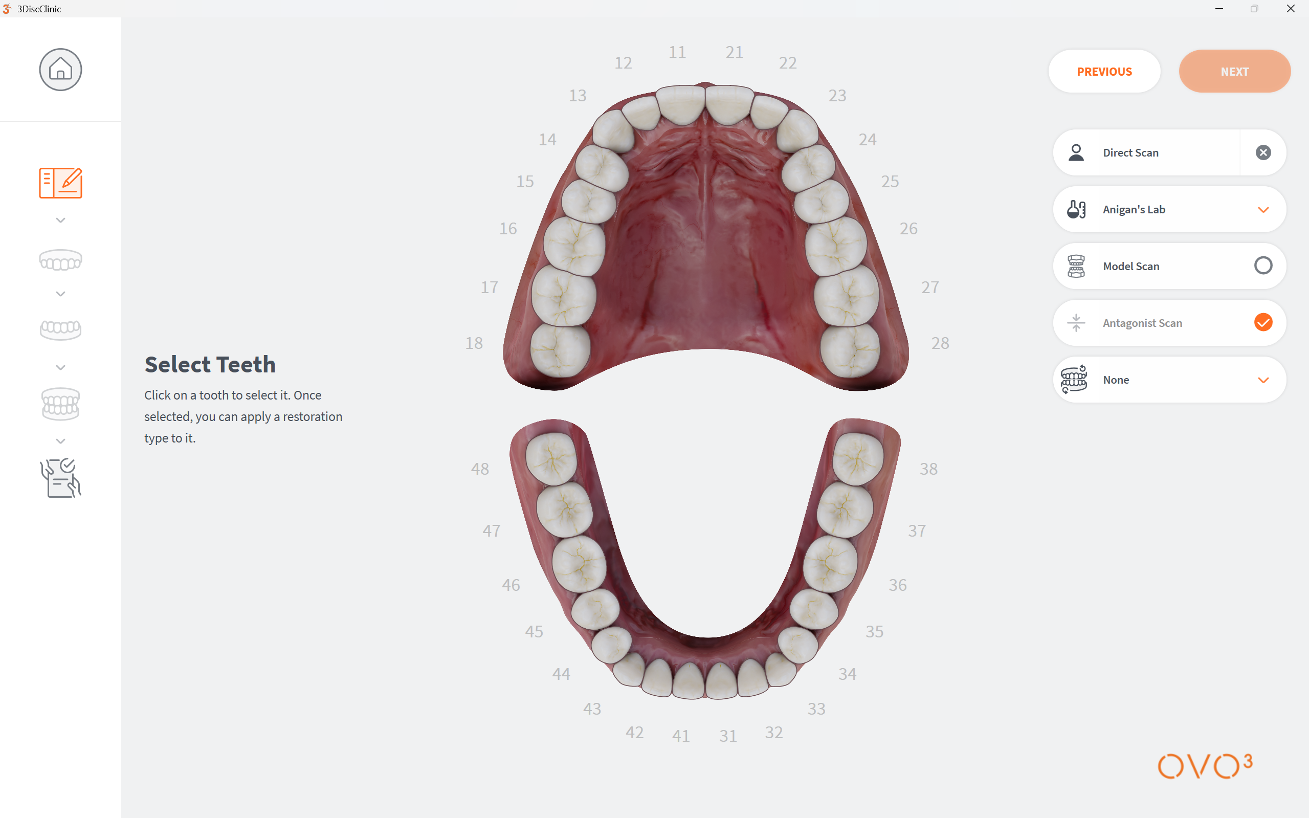 The 3DiscClinic™ Workflow Menu will display the steps that correspond to the Restoration options you select in the Case Setup page.