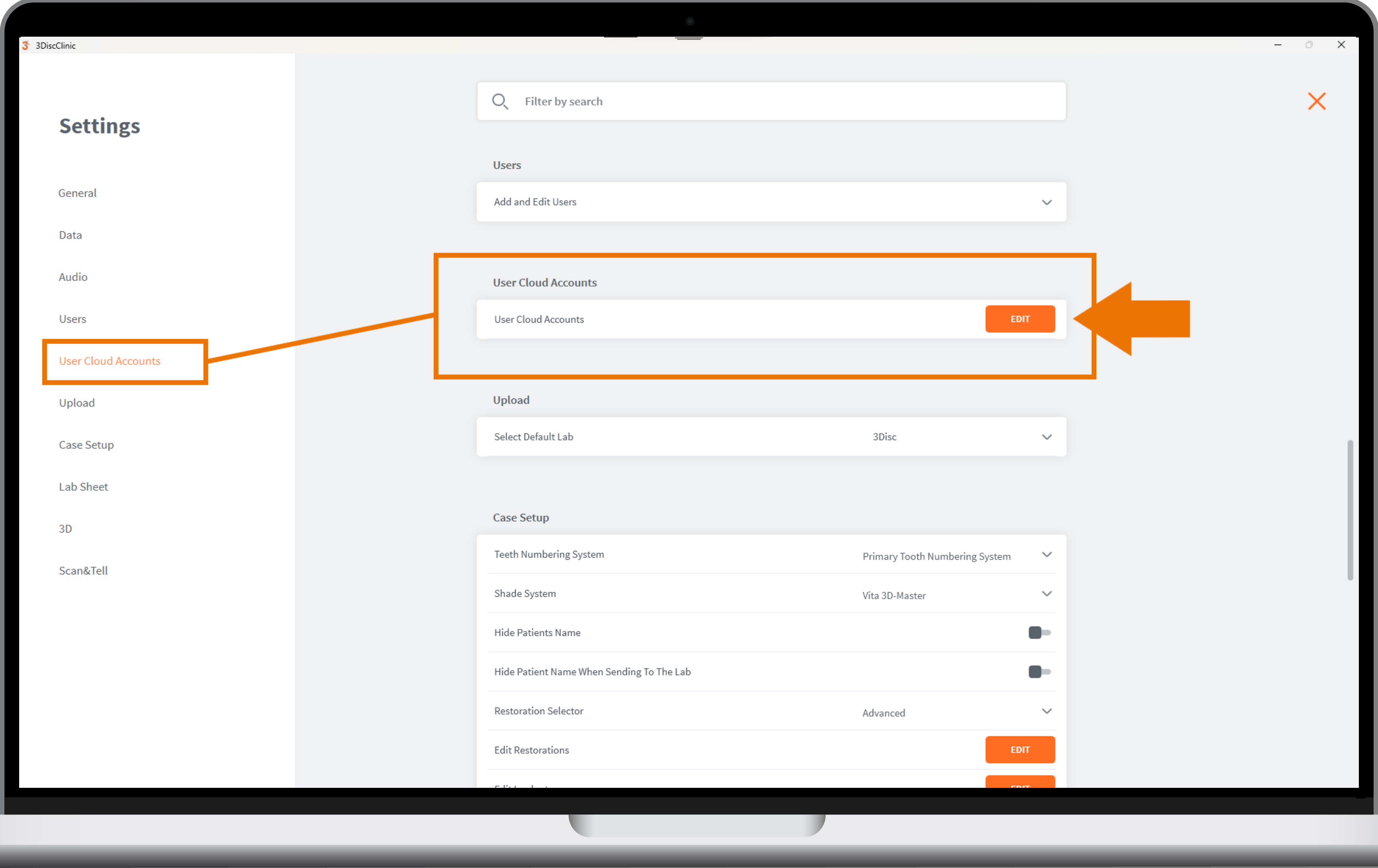 - 2. Select User Cloud Accounts in the left-hand Settings menu, and clickEdit
