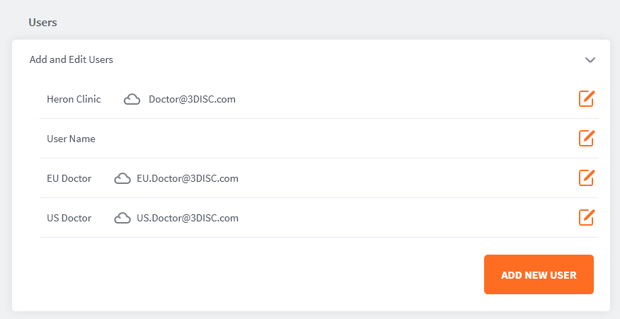 - 3. Select the default “3Disc Clinic” User profile, and click on the Edit icon to customize the Admin User account.